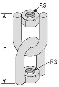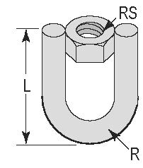 Part No. RS L (mm) R (mm) Max. Rec. Load lbs Max. Rec. Load kN Wt. Each lbs Wt. Each kg M2250 3/8" - 16 1 3/4" (44.4) 1/4 (6.3) 620 2.76 0.13 0.06 M2250 1/2" - 13 2 (50.8) 3/8" (9.4) 1150 5.12 0.17 0.38 Unless otherwise specified, all dimensions on drawings and in